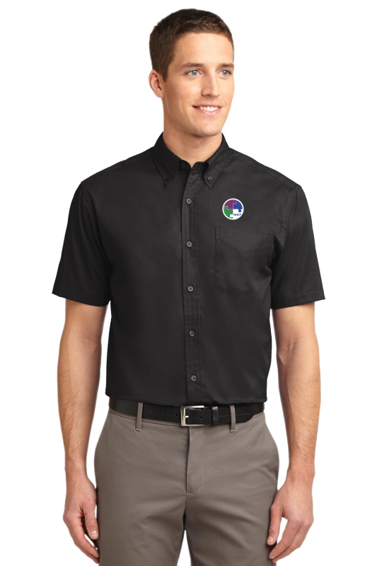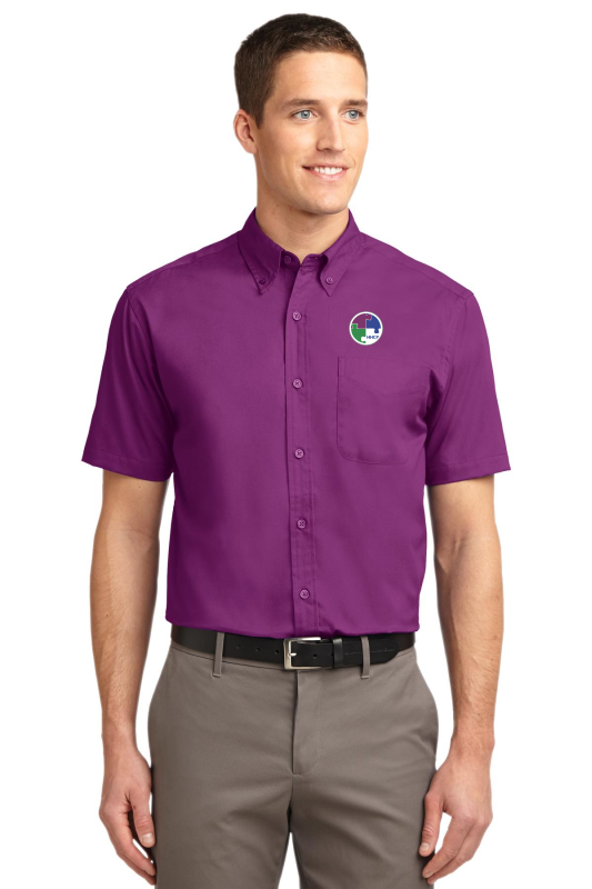 This comfortable wash-and-wear shirt is indispensable for the workday. Wrinkle resistance makes this shirt a cut above the competition so you and your staff can be too. 4.5-ounce 55/45 cotton/poly Button-down collar Dyed-to-match buttons Left chest pocket Back box pleat White Athletic Gold Texas Orange Red Burgundy Coffee Bean Light Blue Navy Classic Navy Steel Grey Purple and Black have a Light Stone contrast neckband. Light Stone and Royal have a Classic Navy contrast neckband. Dark Green has a Navy contrast neckband.