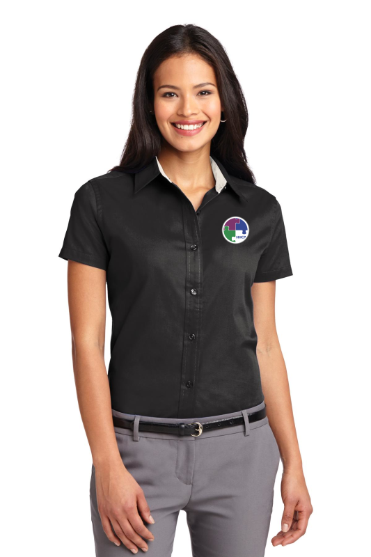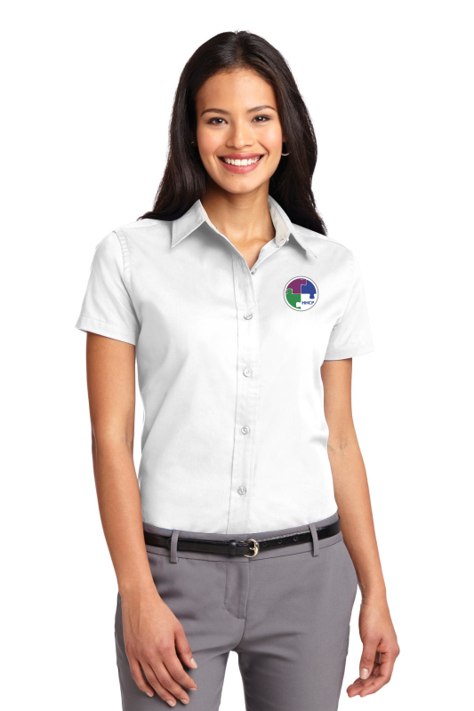 This comfortable wash-and-wear shirt is indispensable for the workday. Wrinkle resistance makes this shirt a cut above the competition so you and your staff can be too. 4.5-ounce 55/45 cotton/poly Traditional relaxed look Open collar Dyed-to-match buttons White Athletic Gold Texas Orange Red Burgundy Coffee Bean Light Blue Navy Classic Navy Steel Grey Purple and Black have a Light Stone contrast neckband. Light Stone and Royal have a Classic Navy contrast neckband. Dark Green has a Navy contrast neckband.