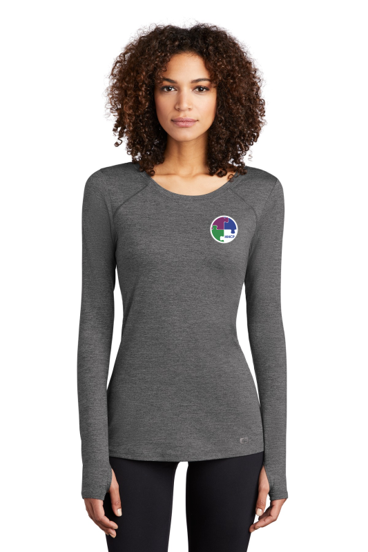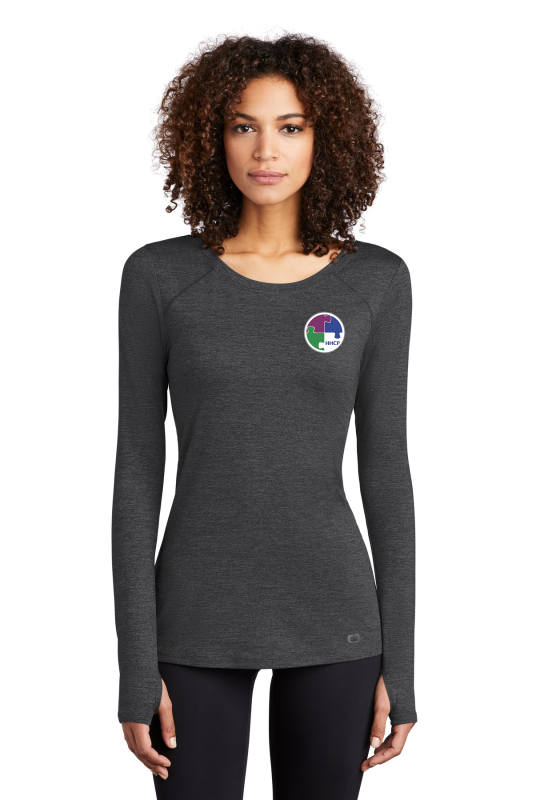 STAY-COOL WICKING STRETCH FLATLOCK SEAMS FOR COMFORT REFLECTIVE DETAILS 5.2-ounce 88/12 poly/spandex with stay-cool wicking technology OGIO heat transfer label for tag-free comfort Cutout back with strap Thumbholes for warmth Black reflective O heat transfer on front left hem