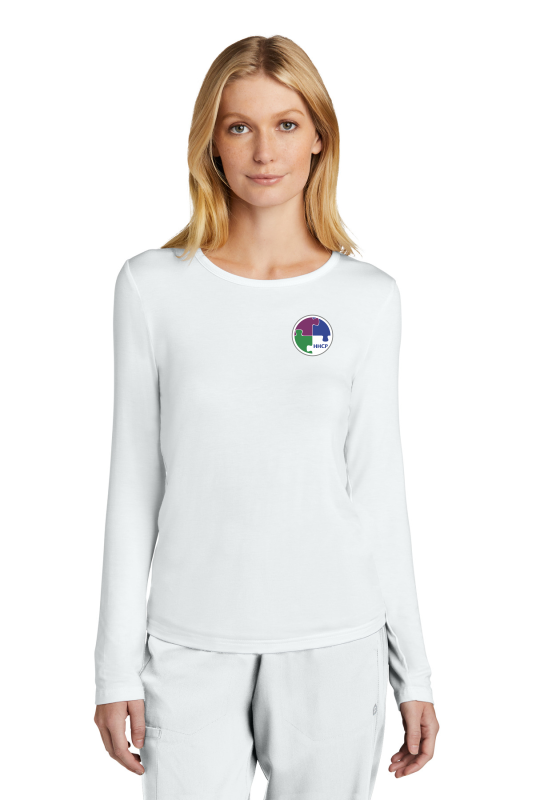 96/4 rayon/spandex Round neckline WonderWink heat transfer logo at hem Trim fit to easily layer under scrub tops without extra bulk